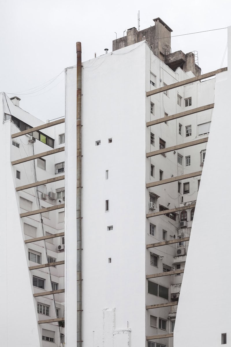 The “Air and Light Shaft” is an element devised in the first Building Code of Buenos Aires (1944) in order to guarantee the minimum necessary daylight and natural ventilation requirements of the internal spaces of a new building. Although the regulations and characteristics have evolved over time, Air and Light Shafts have always been determined by a series of common factors related to the plot of each building, such as its surface area, the width of the street, its location inside the city block and the plot’s zoning. The variation of forms, volumes, sizes and steps that are visible in these images come from the mathematical combination of these values. Where the development of the city is conceived through the maximum possible exploitation of its surface, the Air and Light Shafts present a void that responds exclusively to the form of the law.