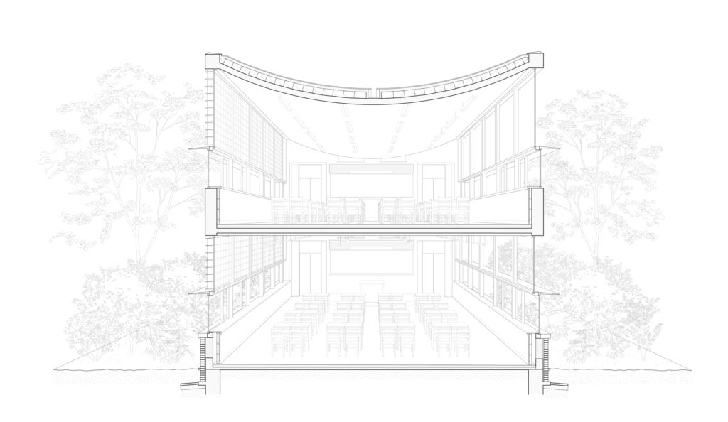 In the context of industrialization, “handmade pottery” still has an irreplaceable appeal. “Craftsmanship” is at the heart of this school’s teaching, and “craftsmen’s workshop” is at the center of the campus. We have found a form for each function and let them in their place. The different forms of buildings create a rich outdoor space that distinguishes the campus from the school typology that is dominated by massive buildings. People can easily meander between the buildings and feel the change of phenology.