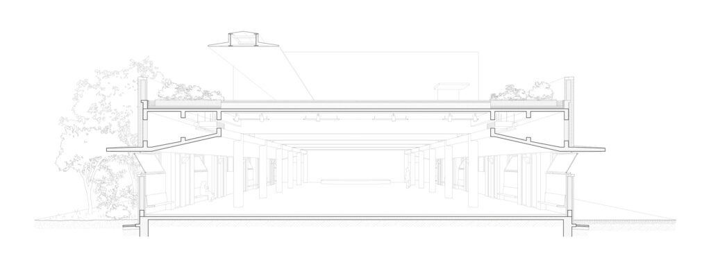 The architects prioritized the unique spatial requirements for each step in the process of pottery making, and arrived at a variety of unique spaces, including classrooms with open views and even light for reading and drawing, introverted and quiet workshops for sculpturing and embossing, and a exhibition hall with a tranquil atmosphere surrounded by large beams and columns for exhibiting the outstanding pottery works. Each function acquires its corresponding space, structure, and equipments, resulting in a series of single buildings on their own.