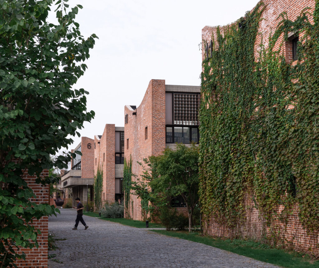 Instead of designing a common campus with massive buildings and extensive squares, Dingshu Vocational School of Pottery is a low-density cluster of buildings that adopted the meandering spatial layout of traditional artisan workshops. The four essential buildings, i.e. two workshops, a multifunctional hall, and an exhibition hall, are placed at the center of the campus, and the Beech Tree Plaza enclosed by them serves as a central stage for outdoor events.