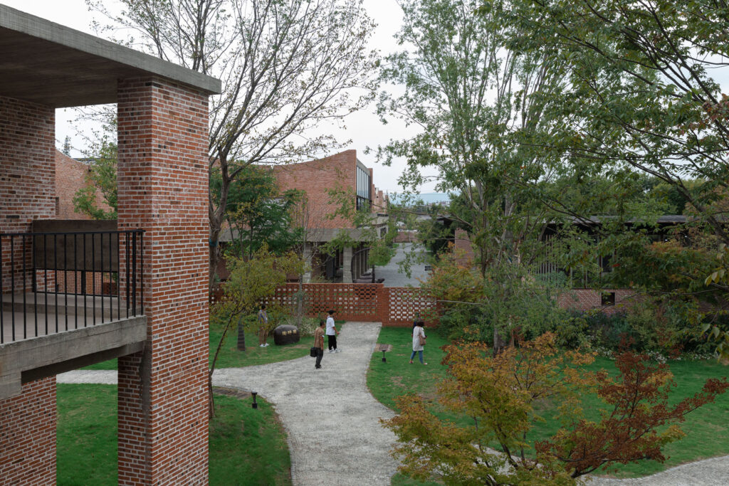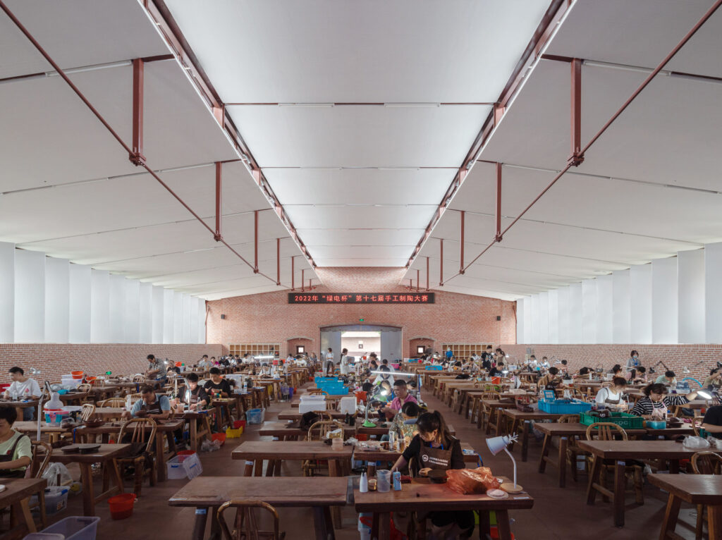 A dozen of scattered, low-rise “small buildings” are thus improvised, with different types of exterior spaces exist between them, all having good natural lighting and ventilation. These juxtaposed various internal and external spaces are linked by canopied semi-outdoor porches and form a rich, diverse environment. The pleasant landscape and the atmosphere of free communication serves as a source of inspiration for pottery creation.