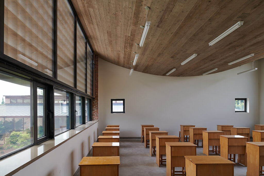 Brick, concrete, and sandstone are the main materials for this campus. Brick firing, wall masonry, and concrete casting are similar to pottery making and convenient for local builders to take on. The use of ordinary materials combined with new construction techniques allow the campus to easily merge into the existing context of the town. Upon completion, the builders and local residents immediately feel so close to the new campus.