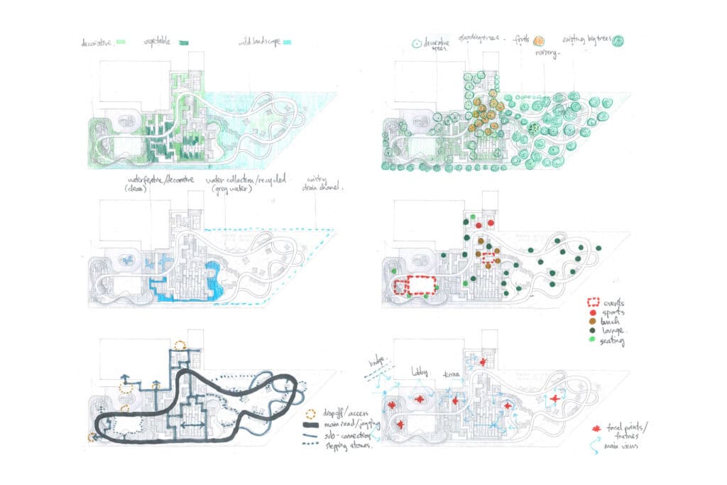 Diagonal Public Spine – A green connective element climbing from the arrival plaza to the rooftop, hosting a variety of uses including informal lounges, game zones, barbecue areas, an outdoor cinema, and community gardens.