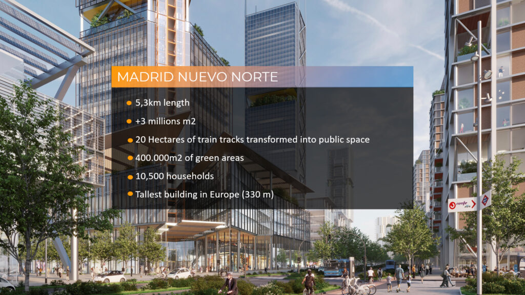 Madrid Nuevo Norte is Madrid’s big 21st-century project. The most important urban transformation action that the capital of Spain is going to experience and one of the main ones in all of Europe, designed to improve the quality of life of its citizens, creating a more efficient, sustainable and prosperous Madrid.