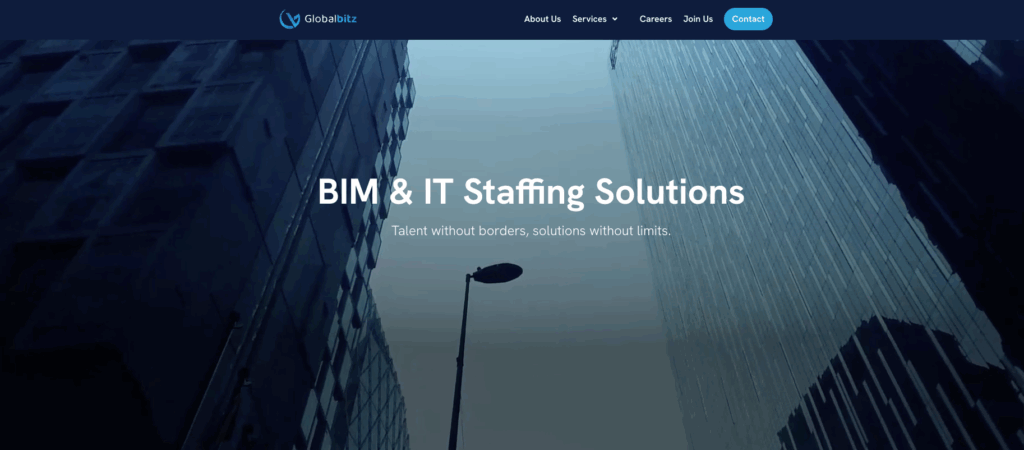 Globalbitz is a leading partner in innovation and digital transformation, specializing in emerging construction technologies and sourcing top BIM and IT talent from Asia, Europe, and North America. Its mission is to empower organizations and professionals through AI-enhanced staffing services and advanced automation solutions.