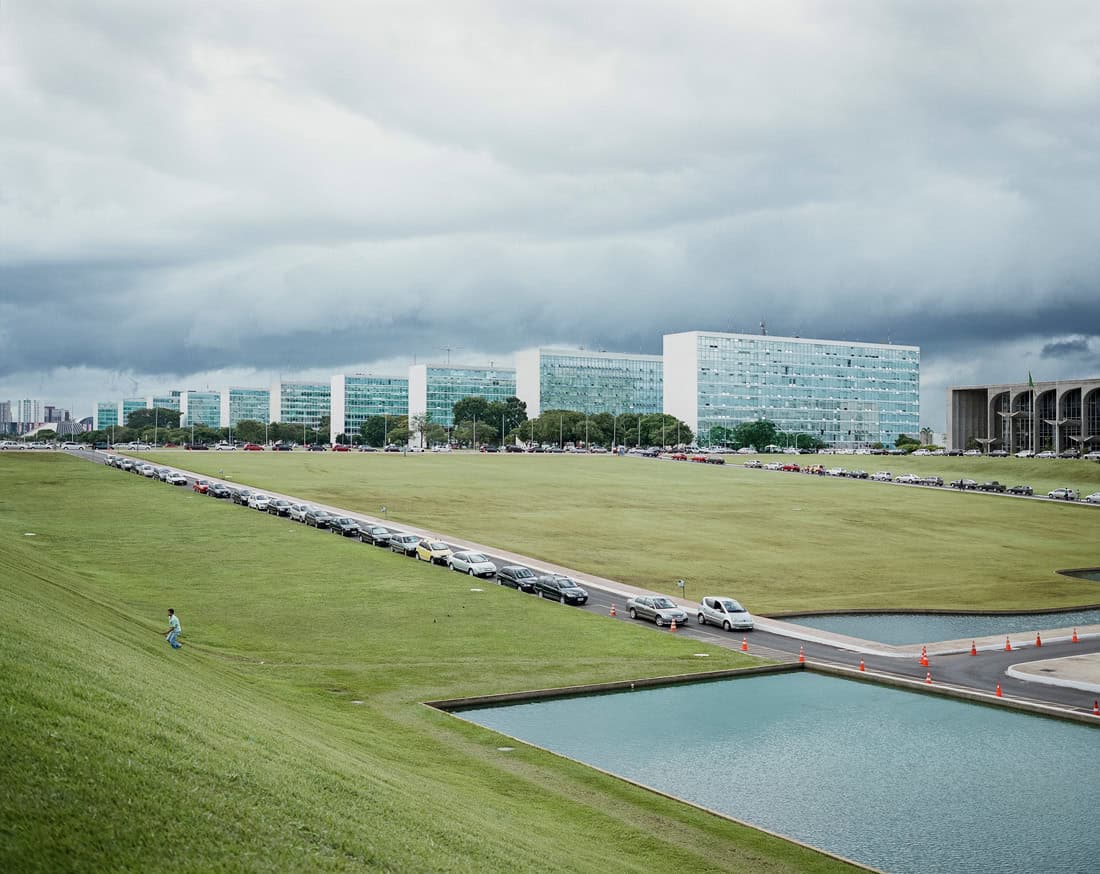 Time is suspended. Life seems to have stopped on April 21, 1960: inauguration day of the new capital, built ex nihilo. Strange scenes of parades of workers, soldiers and officials, amid scattered brand-new futuristic buildings, like an oversized movie set. I came to Brasilia with the feeling of coming back. I left it asking myself whether Brasilia exists. It seems to. Not as a myth or a symbol of the modernist utopia, but s available open playground for all our improvisations. The real monumentality of Brasilia is its emptiness.