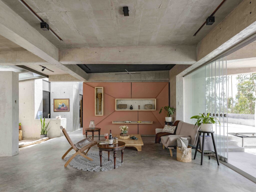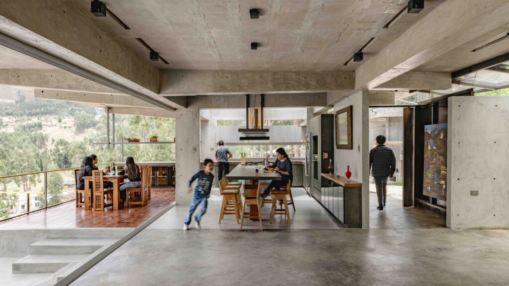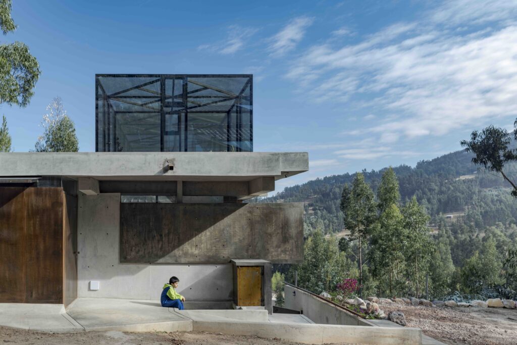 Set on a steep slope of over 35 degrees, the house addresses the Andean challenge of building without denying the inclination, incorporating it as a spatial generator. Its stepped configuration continues the natural rhythm of the hillside, with three levels intersecting visually and structurally.