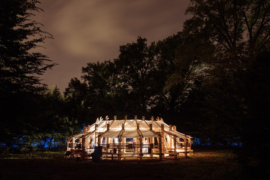 Troppotondo arena (2015) s a theater designed to host performances, workshops, and conferences, built for the second edition of the sustainable Terraforma Festival in Milan.