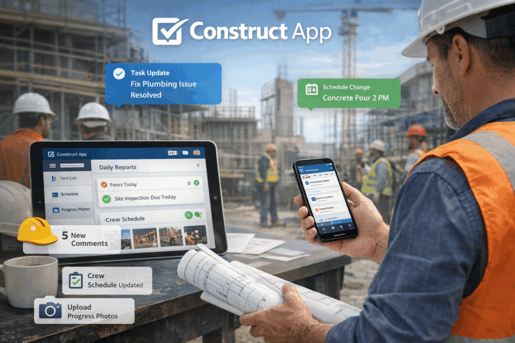 Construct App is a field-to-office productivity platform designed to centralize communication, task management, and project documentation across construction sites. It synchronizes stakeholders in real time, enabling faster issue resolution, structured task distribution, and improved decision-making on active projects.