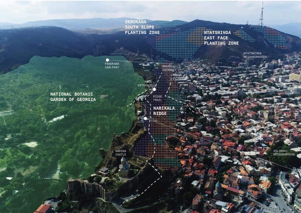 The project is located within the 700-hectare Mtatsminda territory, which includes two pilot areas: Narikala Ridge, a north-facing cliffside that connects the historic city center to the National Botanical Garden of Georgia, and Okrokana, a south-facing slope in a peri-urban settlement in the hills above Tbilisi. The Tbilisi Urban Forest project is a model for sustainable and resilient urban afforestation that can be replicated in cities around the world. The project integrates ecology, technology, and aesthetics to create a biodiverse and resilient urban forest that will benefit both people and wildlife for generations to come.