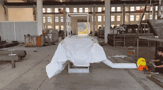 Although the main structure and inflatables were prefabricated, on-site work was still needed, like the ceiling, railings, and inflatable installation. Early errors and unfamiliar methods made communication more crucial than the drawings. After nearly a month, the result matched the plan, and local workers, once skeptical, acknowledged, “It really looks good.”