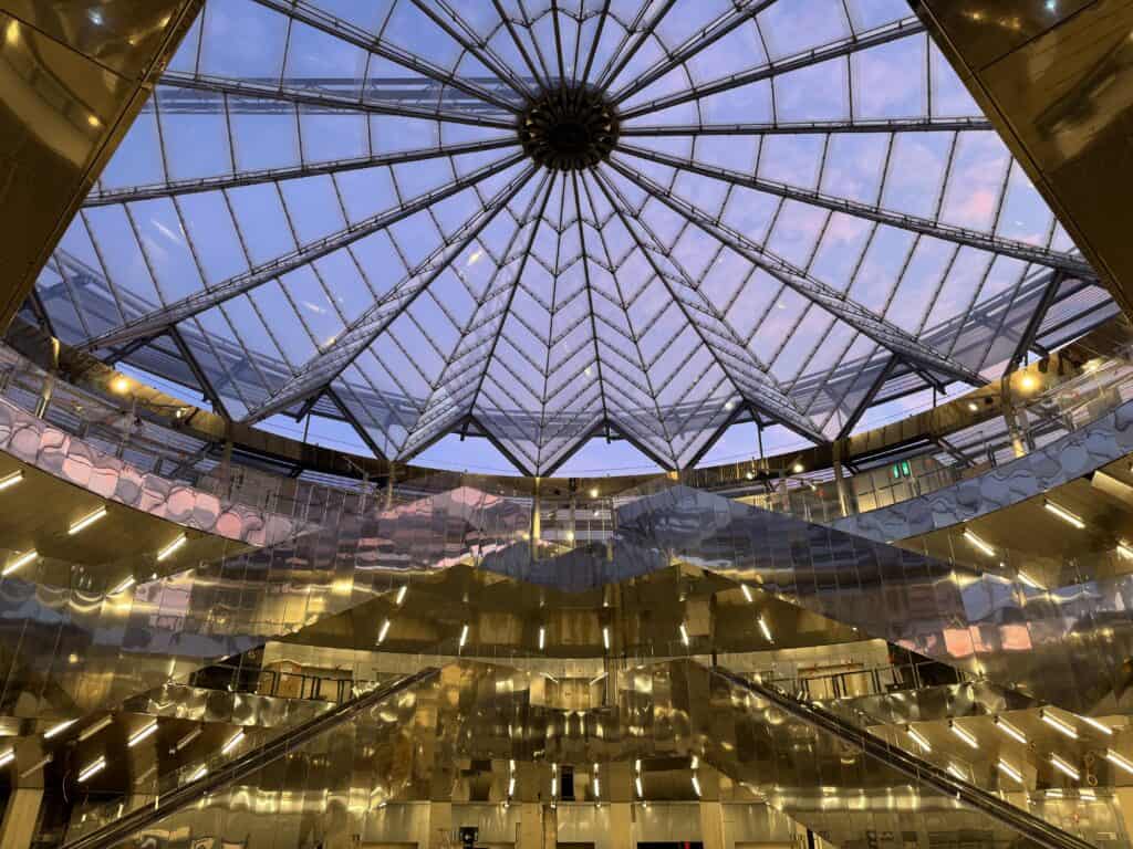 The Grand Projects Company allocated 0.1% of its budget—€35 million—to integrate contemporary art into the 68 stations, transforming them into cultural landmarks. One notable installation is by Chilean artist Iván Navarro, who designed an underground celestial vault: a neon-lit sky with mirrored panels, featuring the names of celestial bodies, creating an immersive cosmic experience for passengers.