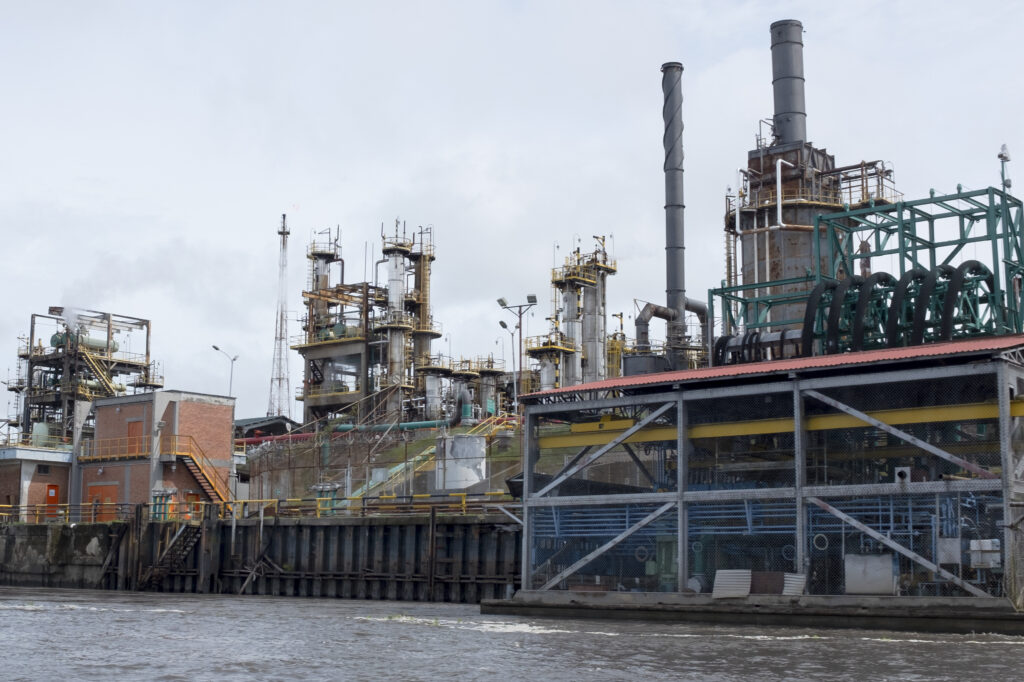 Located in the northeastern state of Santander, a huge industrial complex the size of 600 soccer fields, with 49 processing plants and 290 storage tanks, and with 1,500 direct and 3,000 sub-contracted workers, the Barrancabermeja refinery is a world unto itself. The refinery occupies miles of riverfront property on the Rio Magdalena, one of the country’s largest rivers, and has been the beating heart of Barrancabermeja for over a century. The city’s main church and the National Palace are located just a block away and the city’s largest police station stands right next to the entrance. The soccer stadium for the city’s team Alianza petreolero is located so close that the heat generated from the machinery can be felt within the stadium by fans and players.