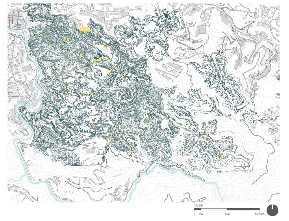 Determining the scale and type of public space making strategy is therefore contingent upon the physical and social conditions of the settlement. Smaller spontaneous settlements, nestled within planned urban areas, benefit from the services and public spaces offered by the rest of the city. In these neighborhoods, smaller insertions of benches, plazas and children playgrounds would already represent a significant contribution to everyday life for their residents and would not require large investments. For activities that require more space such as playing basketball, strolling, or riding bicycles, people would use public facilities and parks in nearby neighborhoods, supporting a healthy exchange of space among communities. When considering larger settlements, however, often located in the city’s outskirts and those with areas above 50 hectares, more ambitious and creative strategies are required.