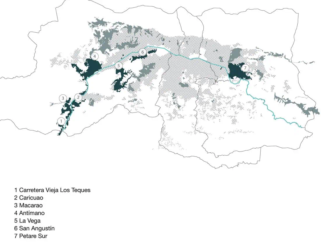 Fig. 3. Plan of the Guaire River and the potential linear public space along its edges. It could represent an area of 128 hectares.