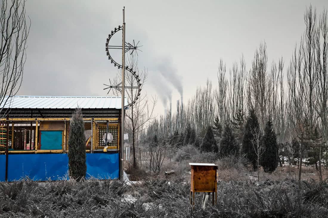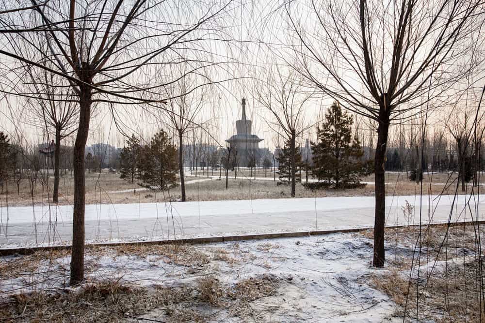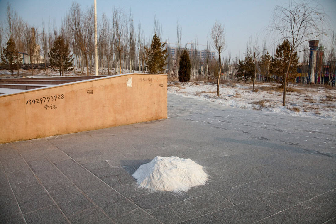 While in Inner Mongolia as an invited artist, I noticed the vast skies and wide desert landscape, the cities seemingly void of people. All around I saw emptiness, and at the same time evidence of lives being lived: coal-burning smokestacks, footprints in the snow, public art, sand sculptures left behind in the desert.