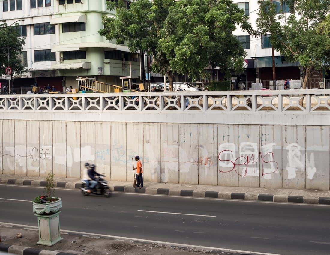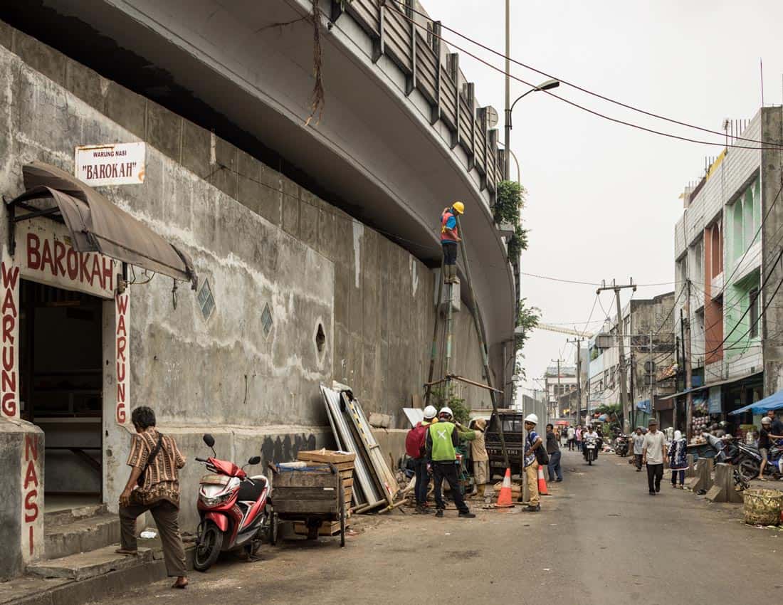 Jakarta is one of the biggest and fastest-growing cities in the world. Its rapid growth in the last fifty years has not occurred without problems, and Jakartans have had to become accustomed to producing improvised strategies to temporarily solve the shortcomings and problems facing them every day in the city. That means not solving problems for good but merely as they arise, one at a time, until the next one rears its head. Constant small-scale improvisations are required to keep Jakarta functioning, which are often original and ingenious. A vast number of small but vital daily interventions must also be completed to keep the city in check, though these are generally inadequate and vastly disproportionate to the objective at hand.