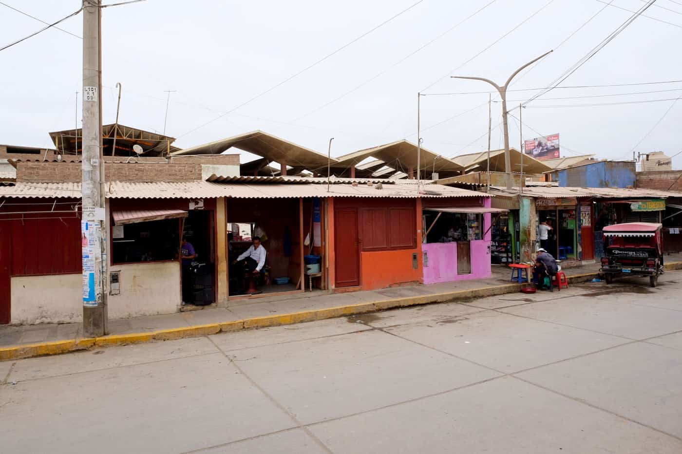 The third structure is the Mercado Modelo (Central Market) in the small city of Lambayeque. This simple superstructure of folded concrete ribbons was built in the 60’s to provide shelter and services for the once informal market that gathered nearby along the Pan American Highway. That same informal market has once again surrounded the new amenity and absorbed it into the urban fabric that predominates in this section of the city.