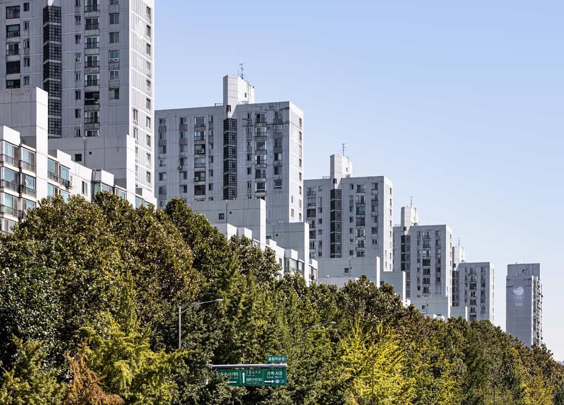 Part 3: Perspectives and Façades focuses on the new forms of architecture and the renewed urban landscape constructed on the materialistic ground laid by the Seoul Olympics. Choi Yongjoon’s photographs of the architecture visible from the Seoul Olympic area, including Teheranno and Euljiro 2-ga, capture the city’s surface, streamlined by the explosive emergence of high-rise buildings before and after the Olympics. These photographs are placed as frontispieces for each of the subsections: office buildings, residential facilities, infrastructure, and cultural facilities, behind which corresponding archival materials produced by the designers and architects are arranged.