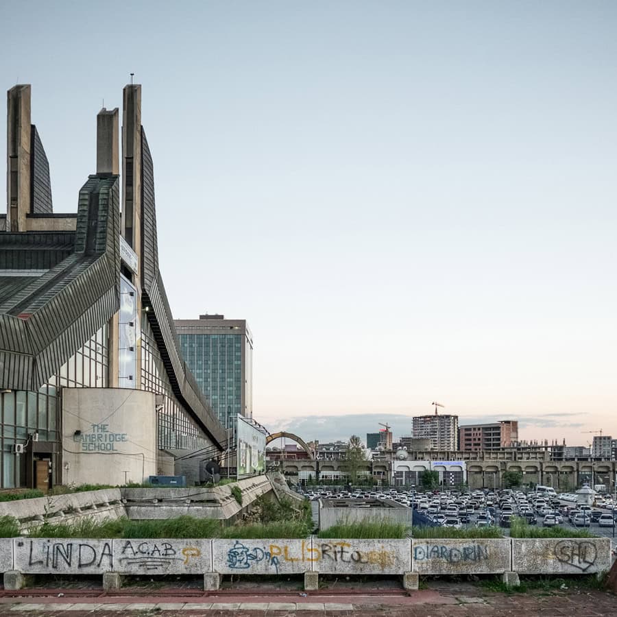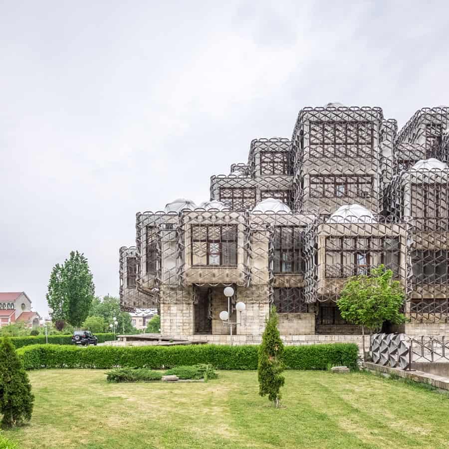 The defunct Socialist Federal Republic of Yugoslavia achieved a certain degree of material well-being, which was reflected in a strong program for social housing or the construction of great public buildings to accommodate the people. Architecture played an important cultural role and Yugoslavian architects, understanding the political climate of their time, rejected Socialist Realism in favor of an International Style with its own characteristics. If Yugoslavia tried to assemble the different religions, ethnicities and languages of its composing nations into one single country, uniting to defend themselves against the Ottoman and Austro-Hungarian imperial powers of the time, the architecture of the National Library of Kosovo tries to condense in the same building influences of both Islamic and byzantine cultures, reinterpreting the mashrabiya and the dome in a contemporary way.