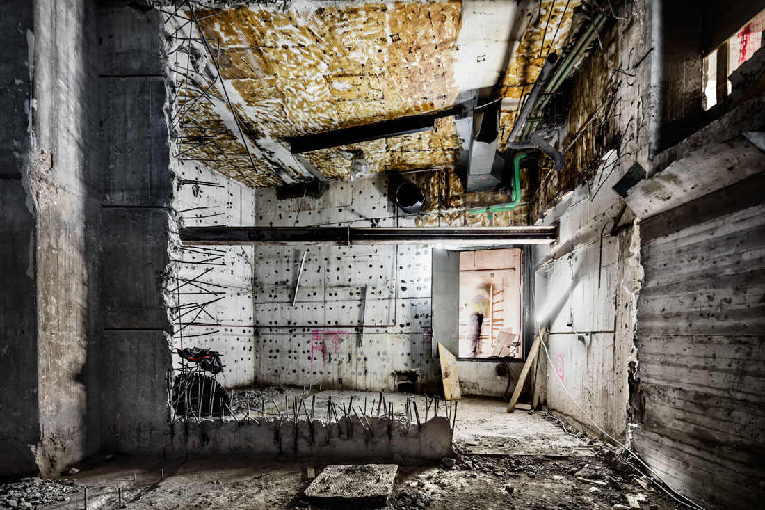 Re-build, build on what already exists, pick a project and redo it from top to bottom. The intersection of two eras, two architects, two different construction techniques: an explosive encounter. A crossing in the same space and time of destruction and construction, demolition and installation. The two worlds intermingle in a temporary chaos. The guts of the work, imperfect, brutal, complex, unpredictable, are scattered throughout the slit open building. New interventions overlap multiple layers that they did not even know existed forming a sandwich of the building’s history. A catalog of impure solutions gradually portions are removed, others sewn, capped, and in the end there are no traces of drastic intervention. Having seen the building inside shows its true interior beyond its final appearance.