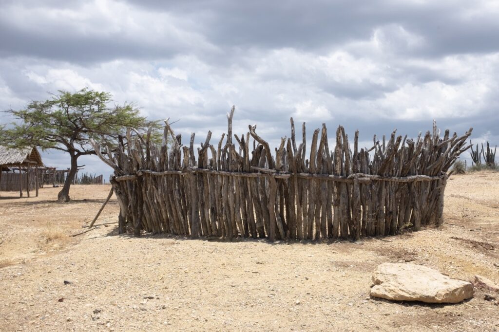 Peoples’ homes in the Wayúu communities, and the corrals that house their goats and chickens, as well, are built from local materials, including plants, trees and the earth itself. The most common building material, and the one that is most unique to La Guajira, is yotojoro. A tall desert cactus, after three years of life yotojoro can be dried out to provide wooded slats for siding and rooftops and is fully resistant to water and sun. Complementing the use of yotojoro, local trees supply the wood used mostly for structural support. Just as the yotojoro cactus and local trees are perfectly adapted to exist within the extreme weather conditions in the desert, so too the homes by the Wayúu, constructed from them, are also well adapted to provide for all the needs of human beings living in such a harsh environment.