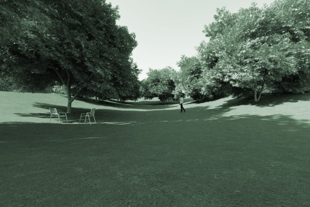 The existing exposed hill entrance is reoriented inward. By using radically minimal decisions and resources, an archetypal space of nature is created. ‘Space of Earth’ is situated in the heart of the city and serves as the new foyer for the Museum. The space of earth is the result of a fundamental architectural gesture: a protected space of interaction between people, nature and the city.