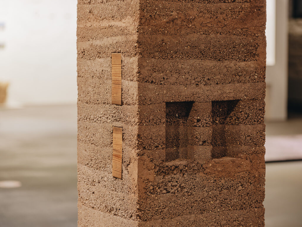 After creating a prototype in a workshop in Paris, Emmanuelle Déchelette travelled to Tallinn to create the 20 blocks that make up the installation. On-site volunteers, including architecture students from the Estonian Academy of Arts, participated in creating the blocks and learned the techniques of rammed earth. The blocks were left to dry for three months before being assembled in the exhibition space.