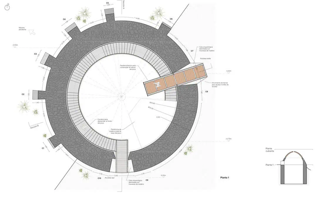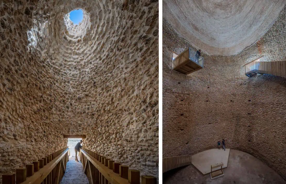 We encountered two distinct typologies: well number 11 had a mixed construction dome (stone/brick), and well number 13 had a stone masonry dome built by layering. This resulted in domes with different shapes: one resembling a hemisphere and the other a cone. We chose to employ these traditional construction systems to preserve the authenticity of the original typologies.