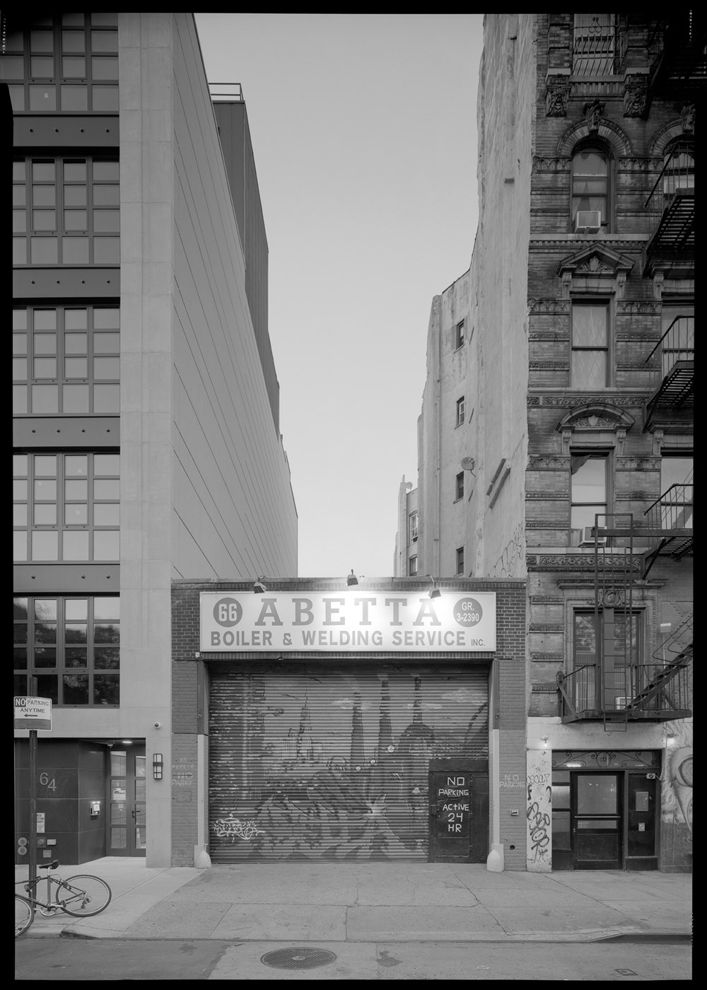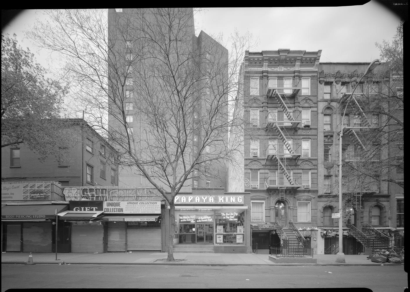 The purpose of this project is to create a series of photographs that document every remaining single-story building in Manhattan’s Lower East Side neighborhoods, bounded by Broadway to the west, Avenue D-Houston Street-Pitt Street to the east, 14th Street to the north, and Canal Street-Essex Street-Delancey Street to the south. The photographs are made without people to allow the focus of the work to remain on the buildings and their surroundings. They are black-and-white images to emphasize the forms and negative space.