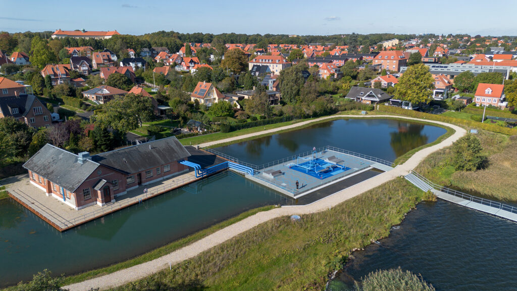 The old red waterworks building on Sct. Kjelds Gade at Nørresø is an important part of the Danish city Viborg’s history, as it housed the city’s first water treatment plant, which ensured the supply of clean drinking water to the people of Viborg in the early 1900s. Now the former water treatment plant is being reused for a combined city park, heating plant and rainwater basin, promoting the green connection between water, the environment and energy.
