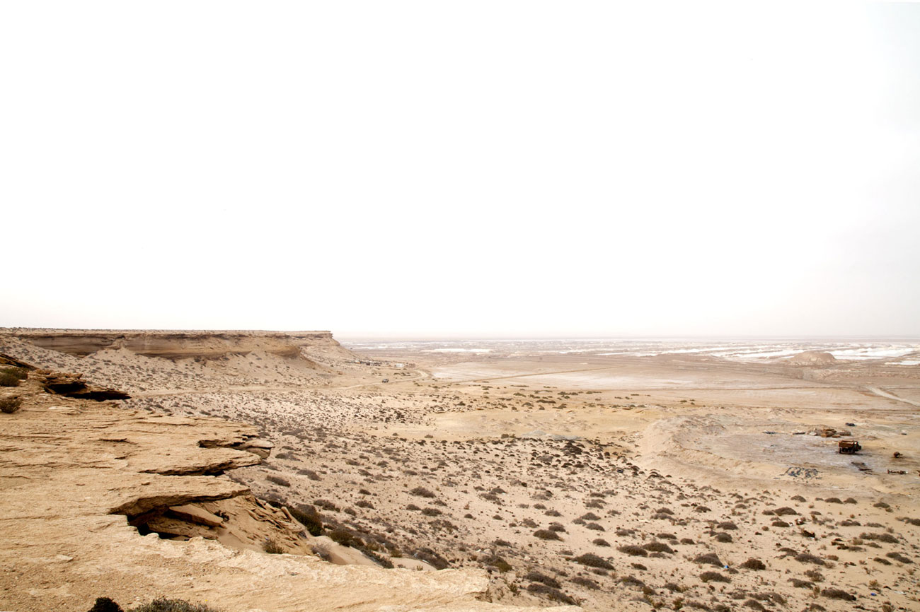(…) In writing you reach perfection, said the French writer, when there’s nothing left to cut and only the essential remains. As we get closer to the southernmost point of Morocco, this principle is transferred onto the landscape and is evident looking out from the road. After leaving Akhfenir and the bird sanctuary, following the tarmac surface of the N-1, the ground no longer hides its thirst, the silence gets thicker and the sands begin to engulf entire sections of the road, as it is crossed by camels who, with their renowned parsimony, go searching for stalks of green. There are just three coordinate references: ocean, desert and sky.