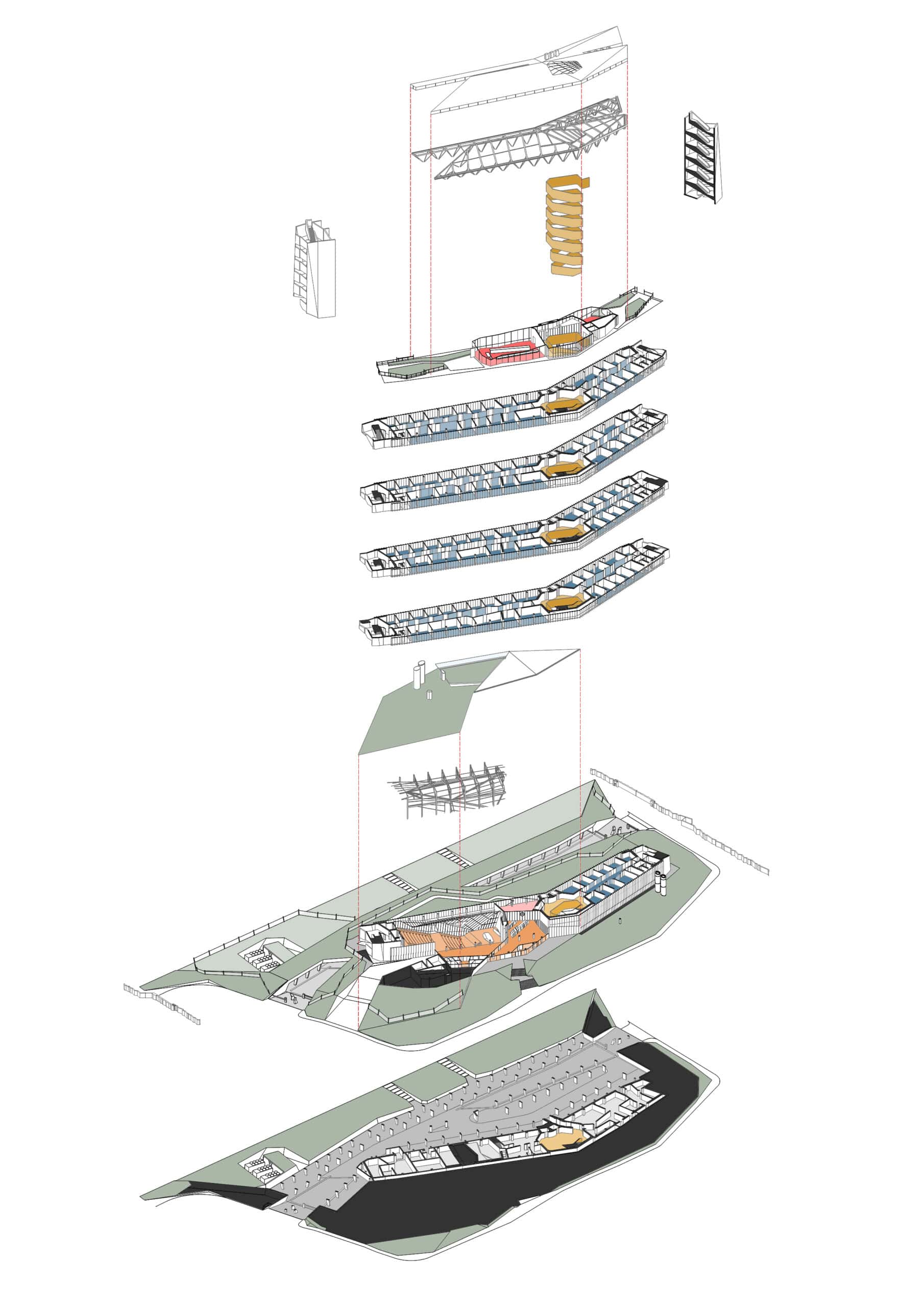 Sidera’s design tells a story of creativity and functionality. Large staircases and communal spaces encourage interaction and foster a sense of community, while the layout’s interplay of compressed and expansive spaces delivers a unique architectural experience. This design not only enhances aesthetic appeal but also promotes well-being and productivity among its occupants.