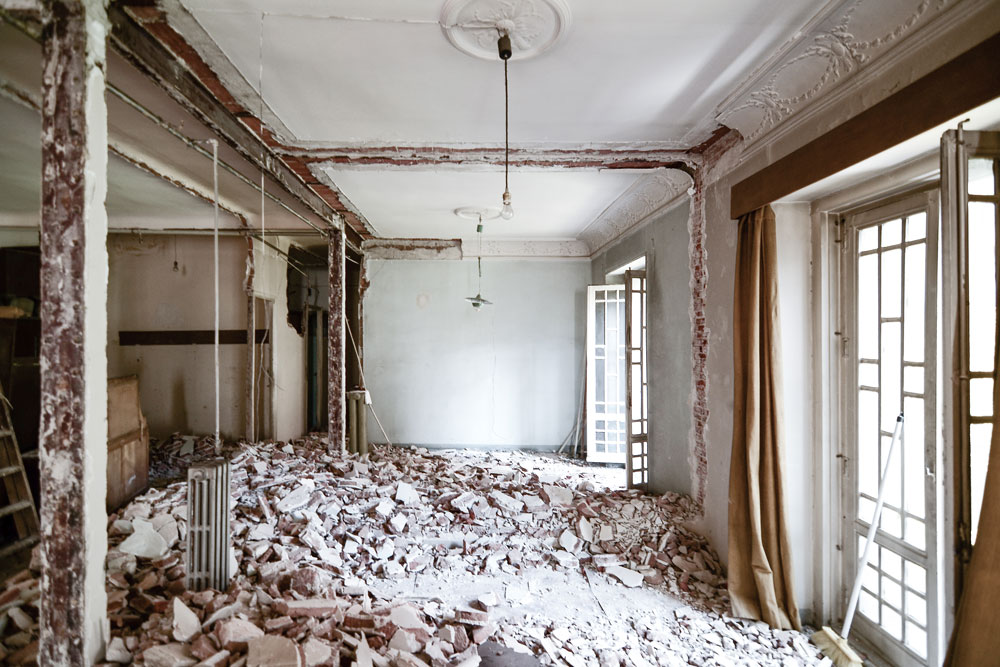 This is demolition journalism: breaking up with the previous, portraying new possibilities. Eight photographs show moments in the transformation, carried out by architects under 30, of several dwellings. Individually, each image freezes an instant of the process revealing an invisible reality; together, they reflect the work of this generation: refurbishments and renovations. In tune with the theme of the Biennale, the series implicitly defends destruction over construction, or refurbishing instead of building from scratch. Demolishing means breaking with a previous state that unveils the invisible qualities, and alters the original work plans. The photographs don’t show the finished objects but rather the processes that describe them and the virtues found in them. Faced with the uncertainty of the finished, the unknown comes to the fore, the fragility of the processes. The unfinished.