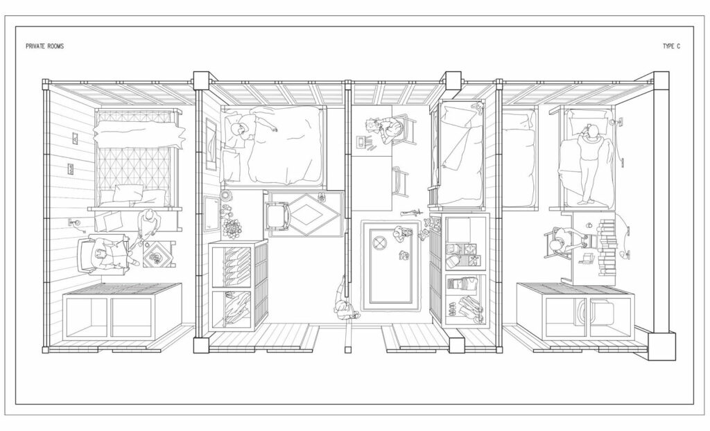 Therefore, I believe the most critical duty of contemporary architecture is to problematize the neoliberal housing crisis that affects European capital cities as an institutional and spatial issue rather than merely an economic one. In the 1970s, a period identified with the wide introduction of neoliberal governmental policies, Marxist academic Raymond Williams highlighted the private as being among the keywords of everyday life, offering an insightful critique of the ideological shift of society [23]. Considering that the idea of the private as being synonymous with a certain configuration of domesticity has been prevalent for centuries, limited work within the architectural discipline has been dedicated to interrogating how the conceptual category operates once it is translated into living culture. Even scarcer are attempts to unveil and question the ideological structures behind the formation of conceptual categories through architectural tools and methods. Such an undertaking will not only elucidate the instrumentalization of the private, but will also provide a conceptual and design interpretation to dismantle this systemic division of knowledge as a framework of intentionally eliminated alternatives. It is not by chance that the economic vector of the private is asymmetrically developed over any other principle of housing administration under the neoliberal mantra of “no alternative.” Neither that Williams exemplifies the semantic development of the private in a moment when neoliberal housing policies come to be forcefully implemented, denoting the cultural embeddedness of the term “as such” in everyday life. To challenge the premises of this discourse vis-à-vis the failure of the neoliberal ideology is to argue that we have never been private [24].