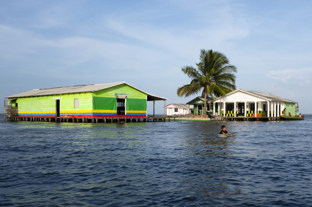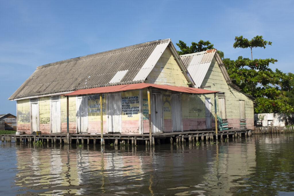 Homes built on stilts, known as palafitos, have been around since the Neolithic period and are to be found across the globe. In Colombia, palafitos exist mostly on the Pacific and Atlantic coasts, as well as on major rivers, such as the Amazon. Ciénaga Grande, which is just around five feet deep, is a perfect site for these informal constructions, especially as the mangrove forest surrounding the ciénaga supplies the timber and palm leaves needed to construct houses.