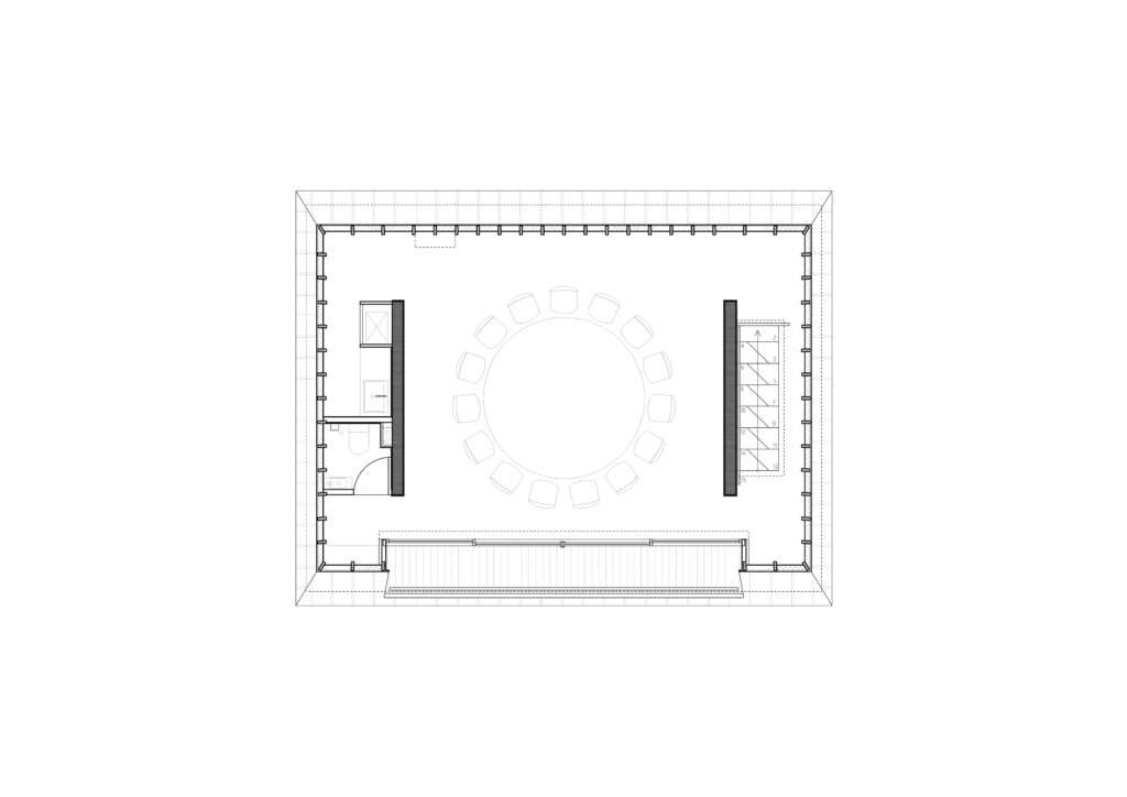 Rather than pursuing established architectural responses—such as stylistic references to rural imagery, expressive structural gestures, or façade-driven design—the project gradually shifted its focus inward. It was ultimately the courtyard wall, not the building envelope, that emerged as the true spatial and perceptual boundary. The design therefore moved beyond a simple orientation toward the courtyard: the garden itself was conceptually absorbed into the interior, becoming a constitutive spatial element of the drawing room rather than its backdrop.