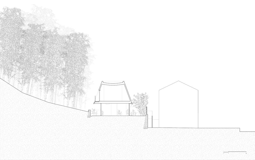 Situated in Tonglu, Zhejiang, Yitingting Cottage was initiated in 2019 as a compact drawing room and dining pavilion within a rural compound. The site was previously occupied by a two-story vernacular dwelling constructed in rammed earth. Strict limitations tied to the original footprint and building height governed the new intervention, fixing its volume to that of a modest living room. Enclosed on all sides and largely disconnected from long-distance views, the project initially appeared spatially constrained and formally unrewarding.